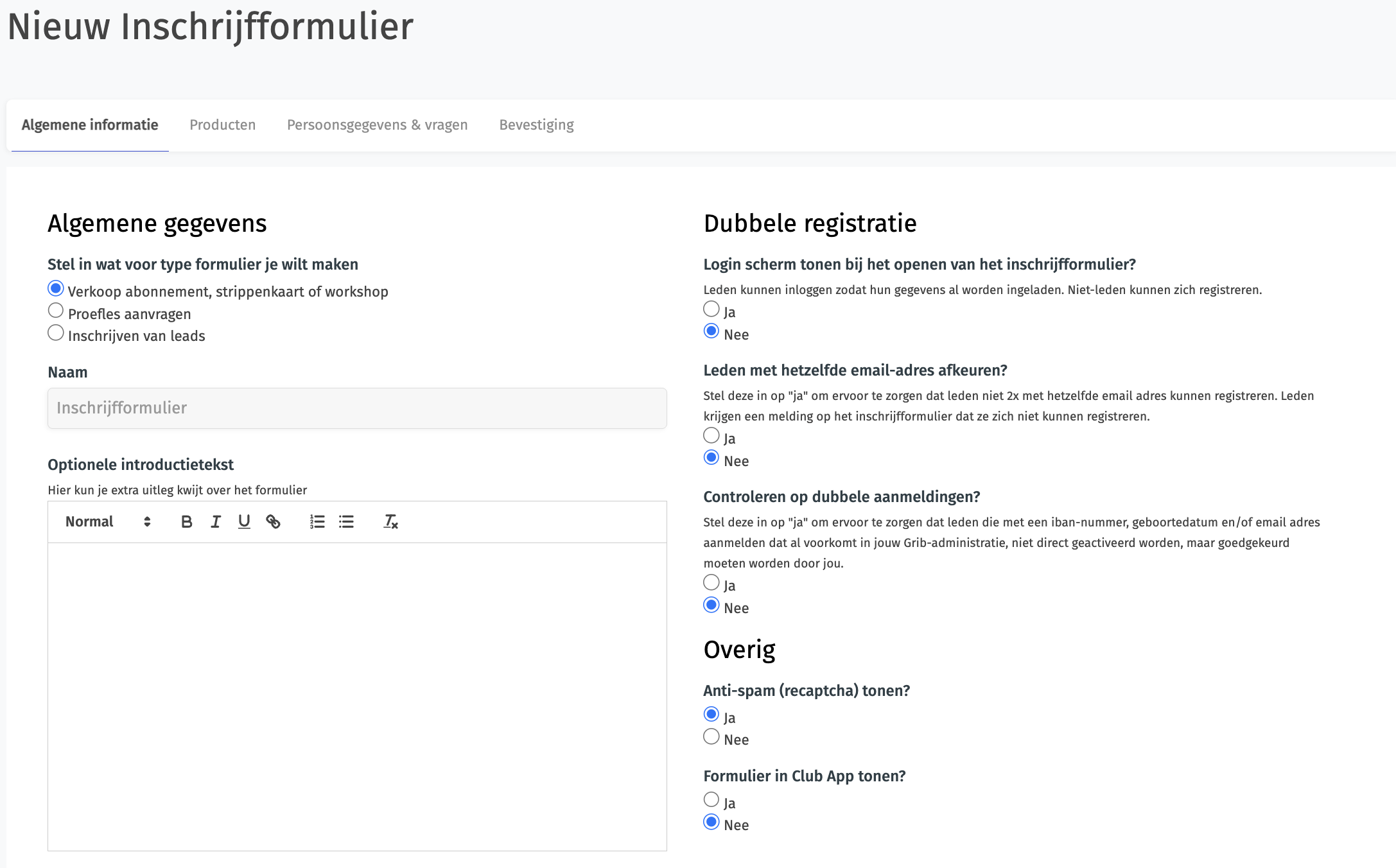 -> Dan kun je die koppelen aan het inschrijfformulier.