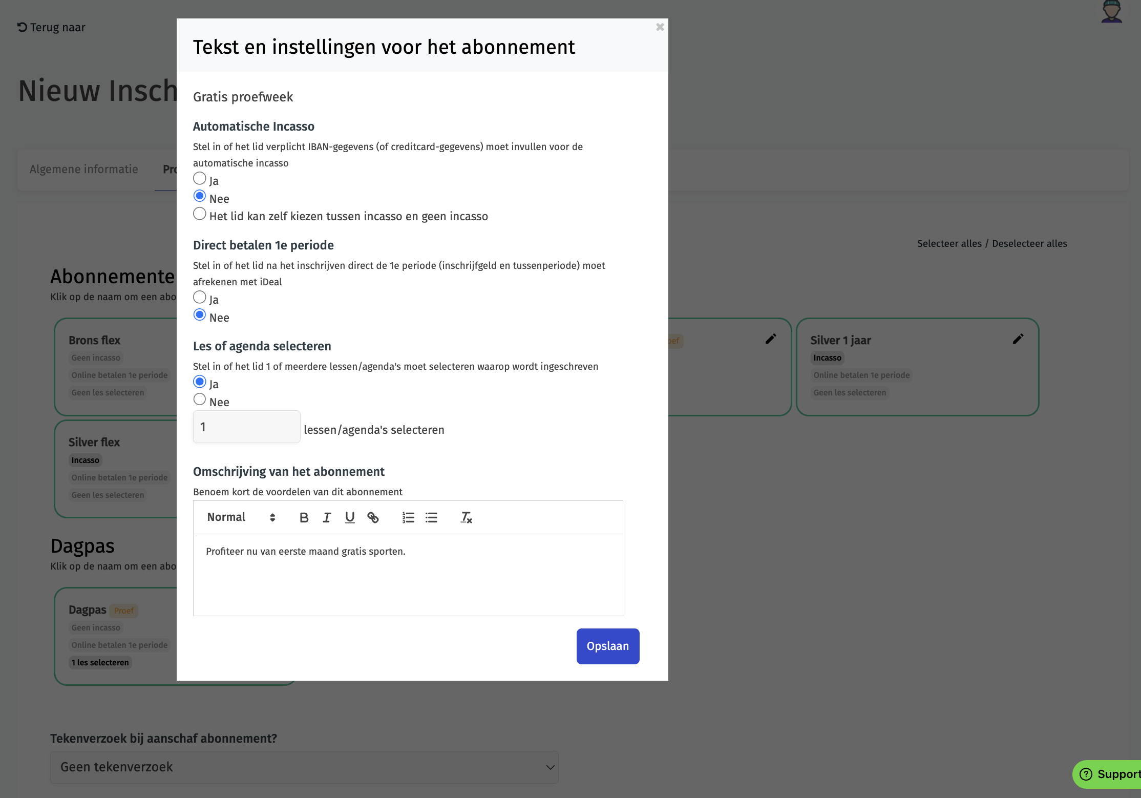 Deze extra opties stel je in bij Beheer > Abonnementstypen > Registratie instellingen.