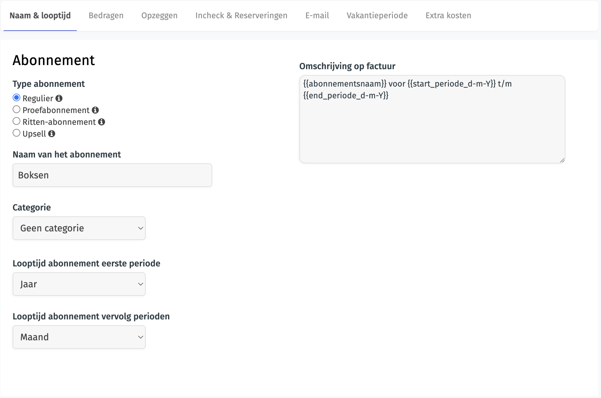Geef het abonnement een herkenbare naam. Die zie je later terug bij het lid.