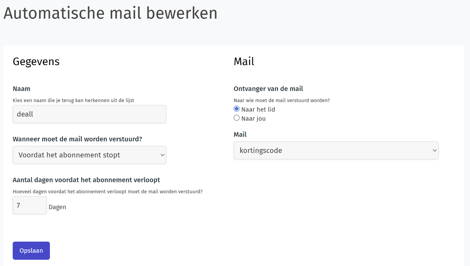 Meer uitleg over automatische mails vind je hier: Handleiding automatische mails