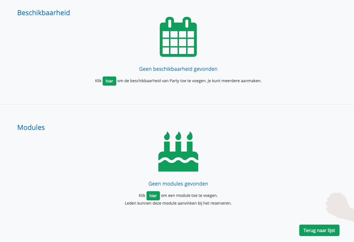 Met de boekingsmodule kunnen leden (en ook mensen die geen lid zijn) zelf een feestje boeken, bijvoorbeeld: een verjaardagsfeestje / een sportief uitje / een ander leuk evenement