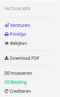 Als eerst zoek je de factuur op. Daarna klik je op het groene knopje en krijg je een pop up te zien.