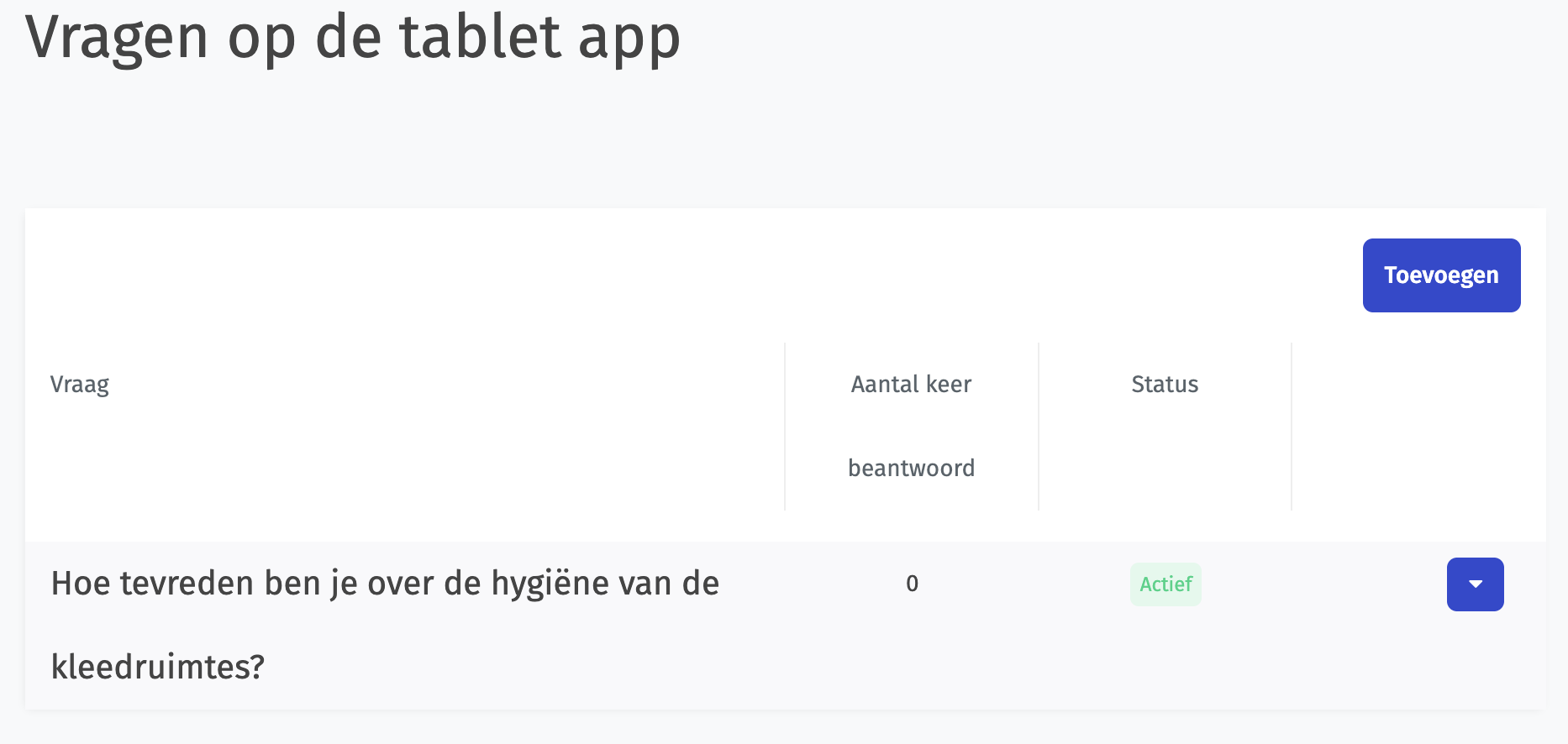 De vraag verschijnt dan vanaf de eerstvolgende incheck op de tablet.