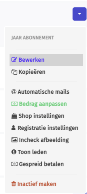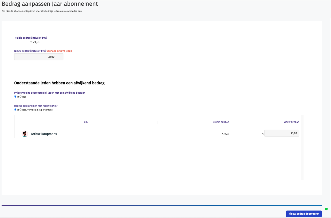 Wil je dat alle leden voortaan hetzelfde (nieuwe) bedrag betalen? Dan pas je het abonnement voor iedereen aan.