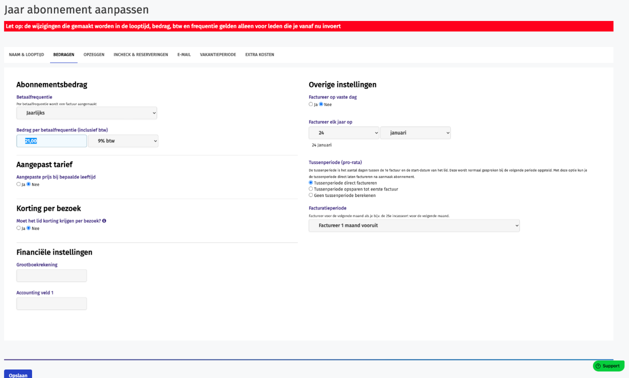Let op: Sommige leden hebben misschien een ander tarief gekregen in het verleden. Controleer dit even, en pas hun bedrag handmatig aan als dat nodig is.