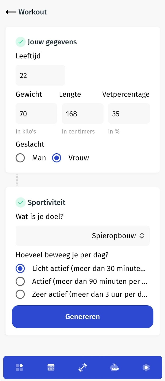 Klik op Genereer workout.
