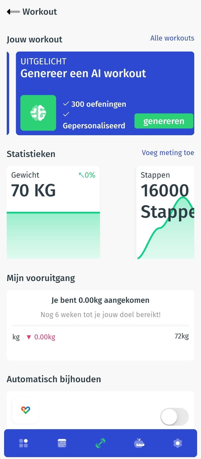 Open de app en ga naar het tabblad Workout.